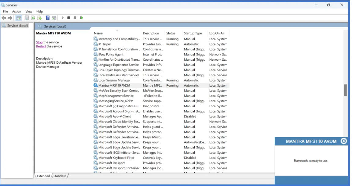 introduction this document aims to provide comprehensive guidance for performing the fingerprint signing with the help of the mantra mfs110 l1 device in the windows web browser with cdsl as the esigning service provider (esp) in both the production and pre production environment contract signing in production environment prerequisites required below are the prerequisites required to perform the aadhaar based fingerprint signing in the production environment with the help of the mantra mfs110 l1 device 1\ mfs110 driver 2\ mfs110 windows rd service 3\ mantra biometric device l1 (mfs110 l1) below are the steps required to set up the above mentioned drivers to perform the signing steps to follow step 1 visit the mantra official website to install the drivers https //www mantratec com/download/user select the product category “authentication device aadhar” and select the “mfs110 l1” mantra website step 2 click on the driver and download the “ mfs110 driver ” double click on the downloaded file the installation process will start installation interface step 3 click the “ install ” and the installation process will start once the installation is completed click on the “ finish ” button to complete the installation installation interface step 4 click on the “ rd service ” and download the “ mfs110 windows rd service ” mantra website interface step 5 double click on the downloaded file to start the installation process click on “ next ” click on “ install ” to install the device installation interface step 6 “click on the “ finish ” button to complete the installation of the mfs110 rd service installation interface step 7 insert the biometric device the confirmation will appear at the bottom right side of the screen stating “ device attached ” success message interface step 8 after the above confirmation message a “ framework is ready to use ” message will appear leading to the device ready to perform the signing device ready to use interface step 9 open https //rdtest aadhaardevice com/ and click on “discover avdm” step 10 a confirmation message will appear stating “rdservice discover successfully” click the “ok” button step 11 navigate to the signing link sent to the signer’s email (provided while initiating the contract) email interface step 12 the pre verification page will open, where the user needs to perform verification using a one time otp click on the “ get otp ” button otp verification page step 13 the user will receive the otp on the email provided during contract initiation email otp interface step 14 enter the otp received via email and click on the “ verify ” button otp verification page step 15 upon successful verification, the user will land on the contract page click on the “ i want to sign ” button to proceed contract page step 16 the cdsl interface will open, please wait for a second it will automatically discover the rd service installed on the device step 17 once device discovery is completed the rd service will automatically detected step 18 fill in the aadhaar number tick the consent box step 19 click on the “start capture” button to perform the signing step 20 a notification will appear on the bottom left side of the screen stating “put your finger” step 21 place your finger firmly on the device the finger will be automatically captured and a notification will appear on the bottom left side of the screen stating “capture success” step 22 the user will be automatically redirected to the signed contract where they can see their signature affixed to it click on “done” to complete the signing process step 23 the user will see the success page and can click on the “ great ” button or be redirected to the success url set by the contract initiator after 5 seconds success page step 24 the user will receive a confirmation email with the header “ confirmation of signing the document ,” containing the signed contract email interface step 25 once all signers have signed the contract, the user will receive another email with the header “your document signing has been finalized successfully,” containing the final signed contract and the audit trail certificate contract signing in pre production environment the mantra mfs110 l1 device is registered for the production environment by default to register the device for the pre production environment please drop an email to the mailto\ servico\@mantratec com along with the device serial number requesting to register the device for the pre production environment prerequisites required below are the prerequisites required to perform the aadhaar based fingerprint signing in the production environment with the help of the mantra mfs110 l1 device 1\ mfs110 driver 2\ mfs110 windows rd service 3\ mantra biometric device l1 (mfs110 l1) below are the steps required to set up the above mentioned drivers to perform the signing in a prep production environment video tutorial to make the setup process for fingerprint signing easier, we have included a video tutorial in the documentation this video offers a step by step guide on how to configure the fingerprint device to perform secure signings https //drive google com/file/d/1jbfil8leaqaduez 5ggks 80noogsjyf/view?usp=sharing steps to follow step 1 visit the mantra official website to install the drivers https //www mantratec com/download/user select the product category “authentication device aadhar” and select the “mfs110 l1” mantra website step 2 click on the driver and download the “ mfs110 driver ” double click on the downloaded file the installation process will start installation interface step 3 click the “i nstall ” and the installation process will start once the installation is completed click on the “ finish ” button to complete the installation installation interface step 4 click on the “ rd service ” and download the “mfs110 windows rd service” mantra website i